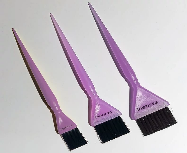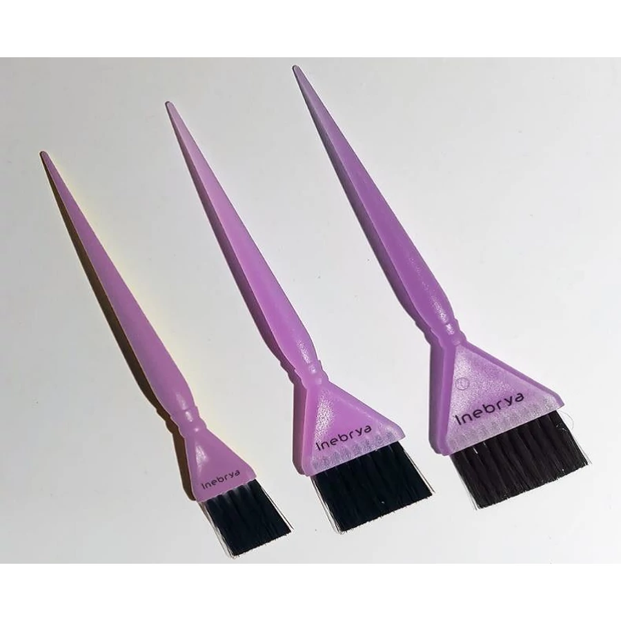 - A szett három különböző méretben tartalmaz lila Inebrya hajfestő ecsetet: keskeny, közepes és széles hajfestő ecset