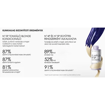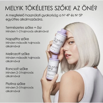 Használata: - Bőséges mennyiséget vigyen fel a megmosott, törölközőnedves hajra - Hagyja hatni 1–3 percig (még intenzívebb hamvasító hatásért 5 percig) - Alaposan öblítse le - Használja hetente vagy igény szerint - A erősebb tonizáló hatás elérése érdekében alkalmazza gyakrabban - Használja az Olaplex No.4P Blonde Enhancer Toning samponnal együtta maximális tonizálásért és élénken ragyogó szőke, ősz hajszínért