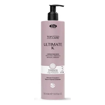 Lisap Top Care Ultimate K lamináló maszk Step 3, 500 ml - A Lisap laboratórium legújabb kutatásainak eredménye a Lisap Ultimate K termékcsalád, az innovatív, sokoldalú, vegán, rendkívül hatékony és hosszan tartó professzionális hajvasaló kezelés, vegán keratinnal és babassu olajjal
