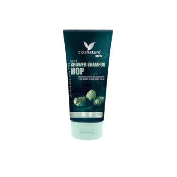 A komlóval készült Cosnature® MEN 3 az 1-ben tusfürdő-sampon frissíti és táplálja a hajat és a bőrt: .