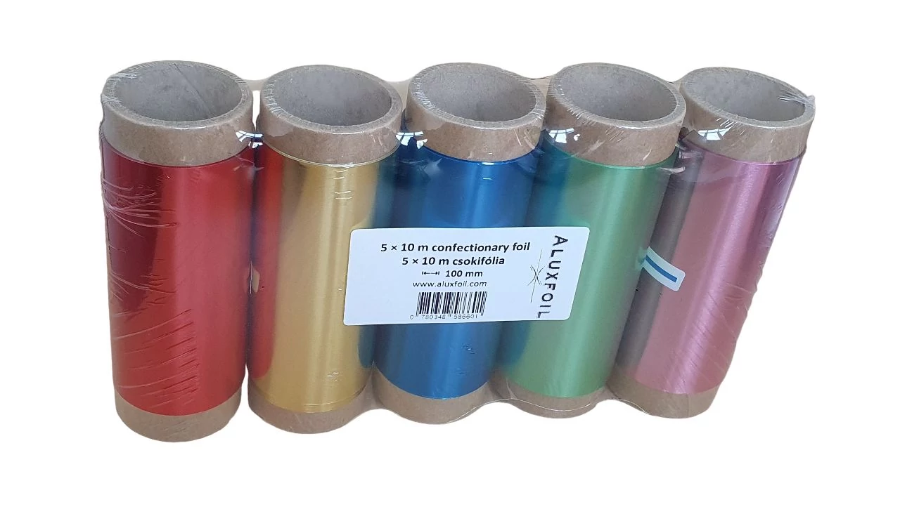 Aluxfoil bonbon csomagoló alumínium fólia, 5 szín, 5x10 m