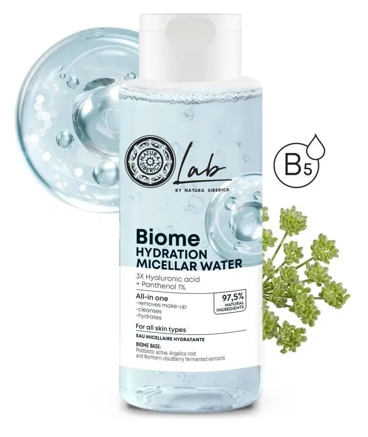 Natura Siberica Lab Biome hidratáló micellás víz Hialuronsav + B5 Panthenol, 400 ml