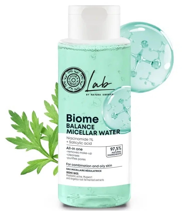Natura Siberica Lab Biome kiegyensúlyozó micellás víz Niacinamid + Szalicilsav, 400 ml