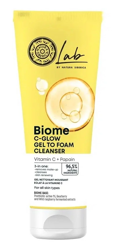 Natura Siberica Lab Biome ragyogásfokozó gél-hab arctisztító C-vitamin + Papain, 140 ml